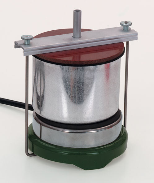 For generation of steam used, for example, in experiments on thermal expansion. Small hotplate with thermal overload protection Aluminum beaker with lid, seal and clamping device.
