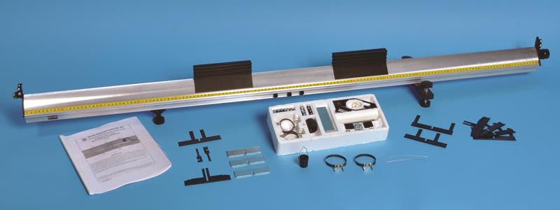 This air track is constructed of high quality aluminum alloy and has the advantages of being both lightweight and highly durable. Precision machining provides a smooth surface and high linearity. It includes a comprehensive accessory package for experiments in linear motion. The track length is 150cm or 200cm sizes, and it is straight to better than 0.1mm throughout. Includes activity guide. ATRK01 Air Track includes a large assortment of accessories.