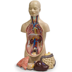 This 12 part, 50cm sexless human torso is appropriate for use in any classroom. This torso shows the major body systems and many anatomical features are numbered or lettered, which can be identified using the accompanying key card.12 Parts Include: