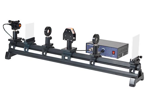 Bright LED light is used here. Fine adjustments in grazing or incident angle can be done using kinematic tuning of the LED mount. The lenses and dove prism are fixed on rail carriers which are held on graduated solid aluminum rail. All the mounts are made of anodized aluminum and can be mounted easily on the optical rail.