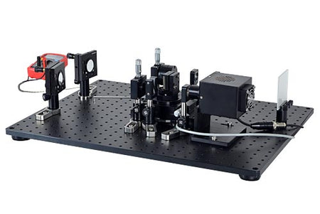 A pecisized angle based movement with display will help the students to create dedicated software in lab view / mat lab. For absorption studies KMnO4 powder provide as a standard reference. Tungsten halogen lamp is provided as a standard source. Photo diode with multimeter is works as the detector. Diffuser screen is provided for direct observations.