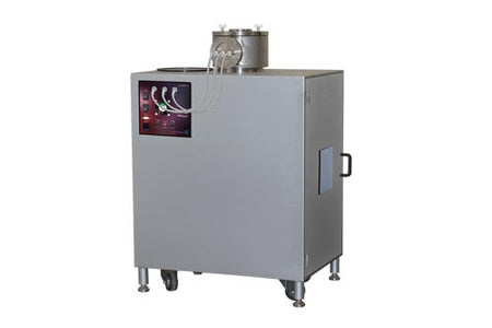 Temperature of the sample at the time of measurement can be set at a range of ambient to 150°C. The conductivity is measured at different points of temperatures, by applying a voltage range from 0 - 300 V and measuring the resulting current. A curve of current is recorded and plotted against temperature by the software. The process is carried out inside a vacuum chamber of up to 10-2 mbar vacuum pressure. Rotary vacuum pump is supplied along with the instrument.