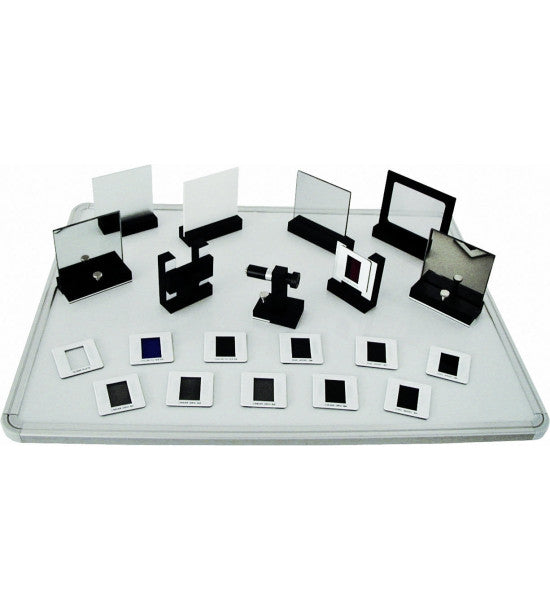 A Laser Optical Set is a collection of optical and mechanical elements that have been designed to make the observation and easy understanding of physical principles of wave optics possible. By such means the usual way of theoretical teaching may be raised to a higher level. It helps in the demonstration of wave optics principles such as interference, diffraction, linear polarization of light, or hologram reconstruction. All components contain a magnetic mounting base. The set is packed in a plastic carry case designated for safe transport and convenient storage.