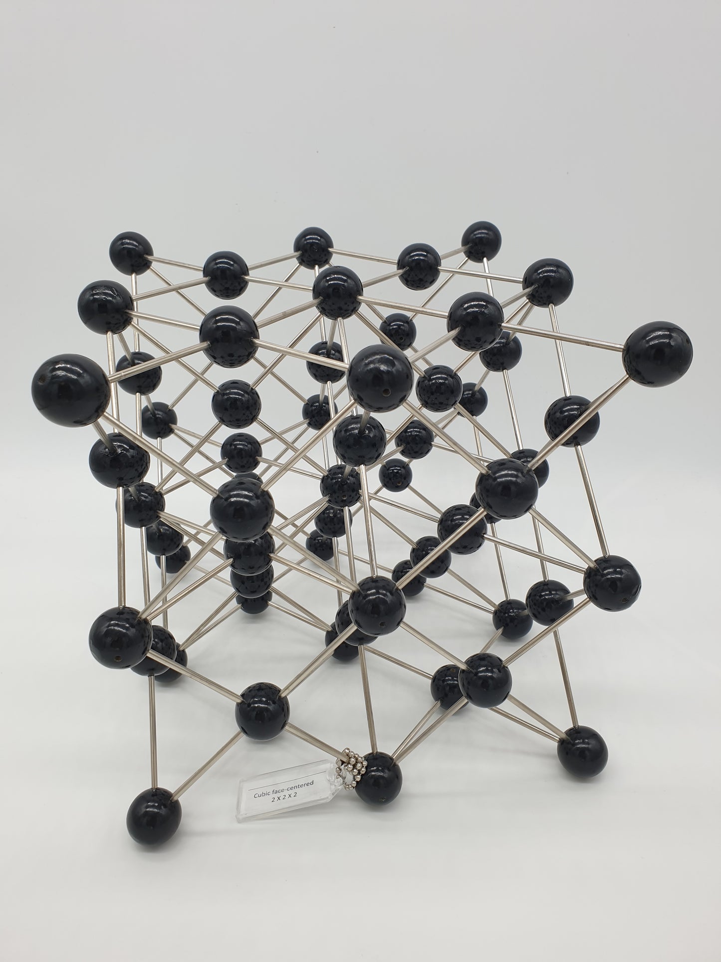 This model is hand made in the USA by Klinger Educational Products. This is a permanent structure. We only use grade A materials. The 1 inch balls are made of hard Maplewood that includes an enameled painted finish. Polished steel rods are used to connect the wooden balls together.