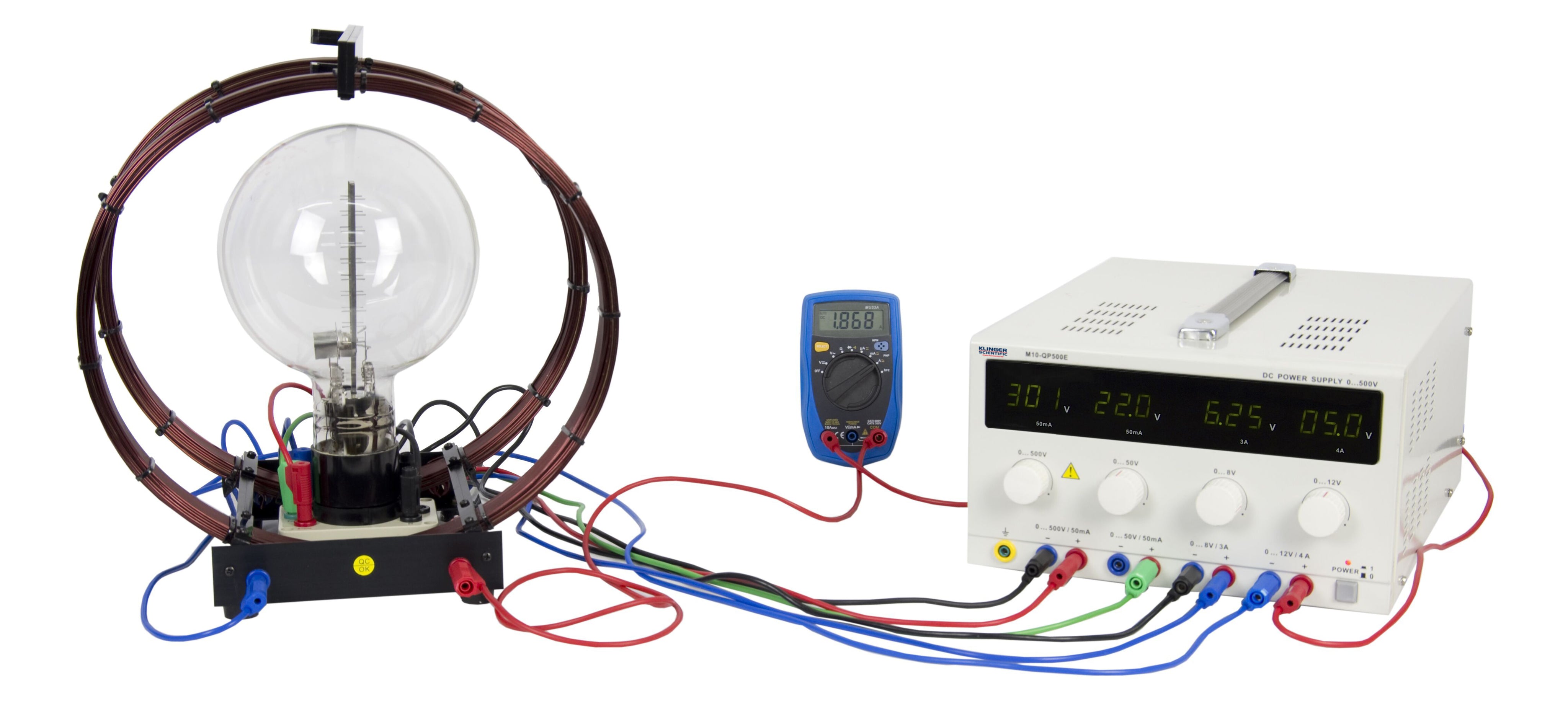 The fine beam tube is used for investigating the deflection of cathode rays in a uniform magnetic field produced by a pair of Helmholtz coils (KSCI-HCL). In addition, it can also be used for quantitative determination of the specific charge of an electron e/m.