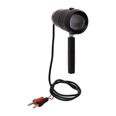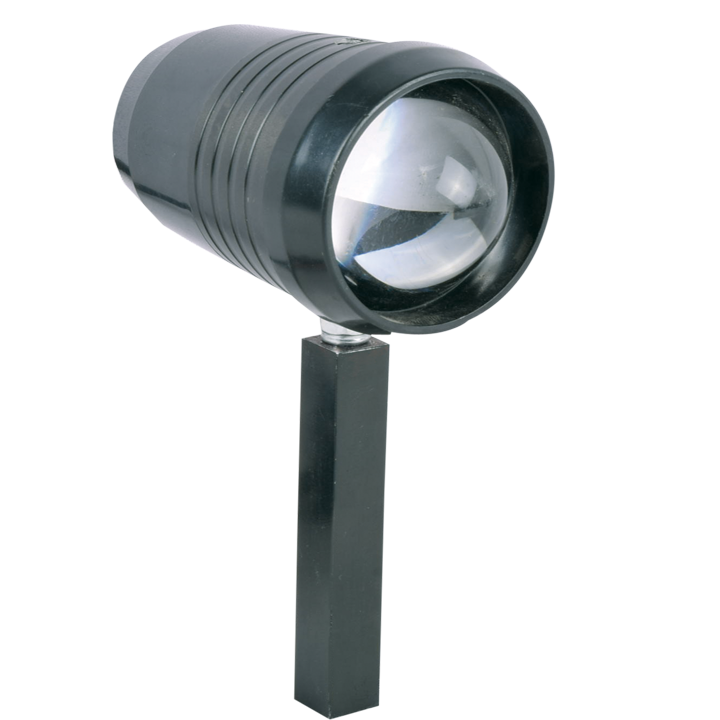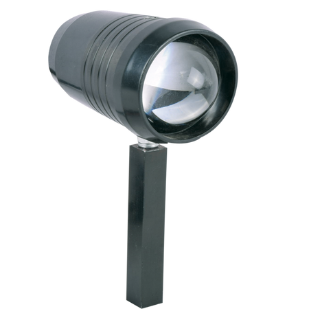 Light source holder consists of 15W projector light mounted on square rod. The light source with optical glass lens, creates a bright and sharp spot of light.