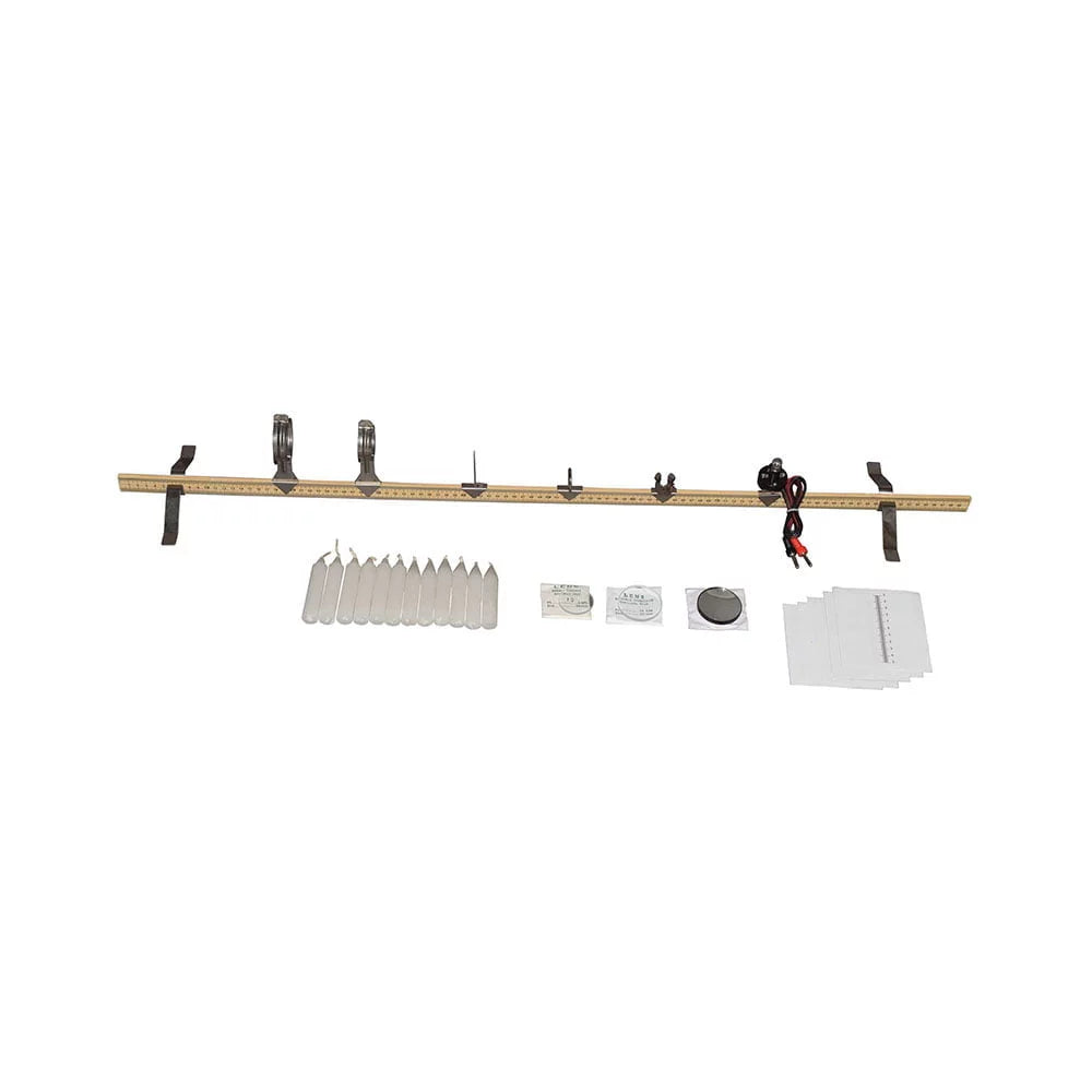 The complete optical bench set is an economical alternative to conventional, expensive optical benches. This set provides accurate demonstrations of basic optics principles. The complete set includes:
