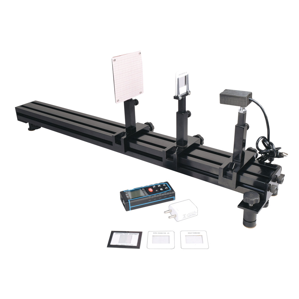 - Laser Range Finder: The addition of a laser range finder allows the user to use any standard wall as a screen, increasing the distance between the screen and the sample. Thus, the diffraction pattern can be seen distinctly and thus increasing the accuracy of the readings.