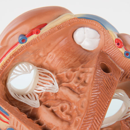 This heart model shows the anatomy of the human heart and is horizontally sectioned at the level of the valve plane. The following parts can be removed from heart: